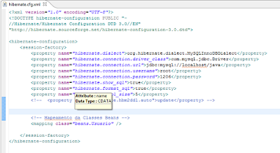4. Passo: Agora criaremos nosso arquivo de configuração do Hibernate, para isto clica com o botão direito do mouse sobre o projeto e escolha New -> XML.