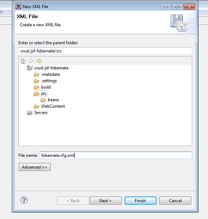 5. Passo: Informe o nome do arquivo XML de acordo com a imagem abaixo e clica em finish.